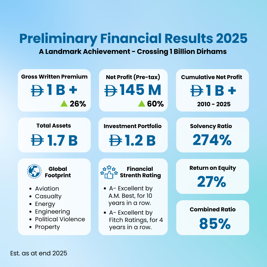 Abu Dhabi National Takaful Company announces its Preliminary Financial Results for the year 2025, marking a historic milestone of crossing 1 Billion Dirhams in Gross Written Premium and Cumulative Net Profit.
